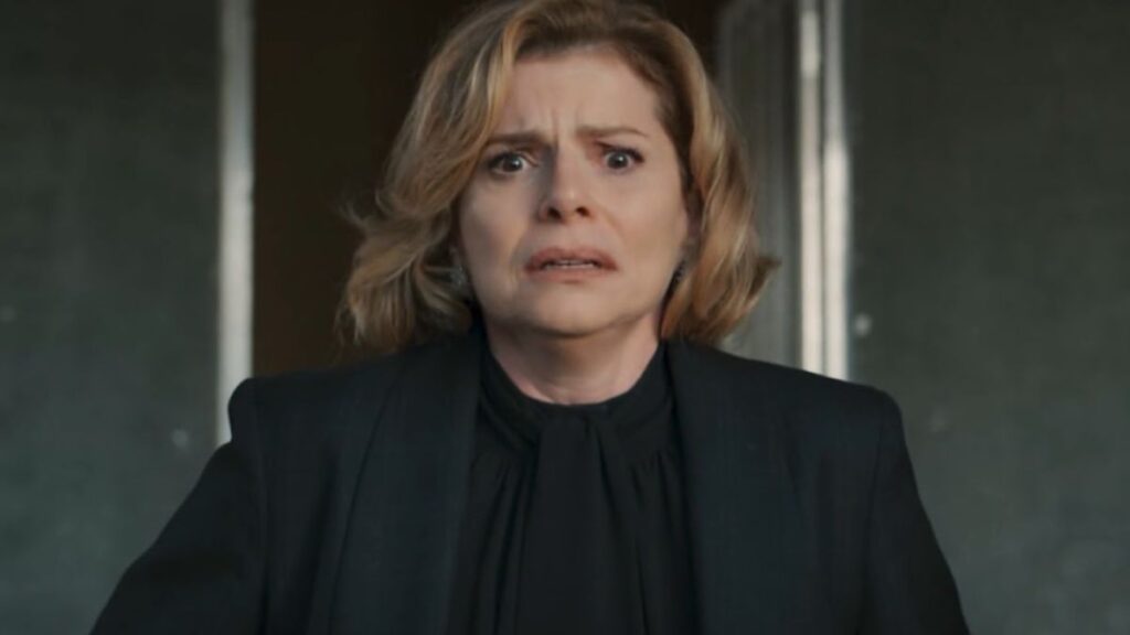 A irmã de Odete entra no hotel portando um olhar raivoso e sai do local logo após visivelmente abalada com a situação. Até aqui não sabemos se o misto de emoções foi causado por ela ter apertado o gatilho ou ter visto a vilã morta.