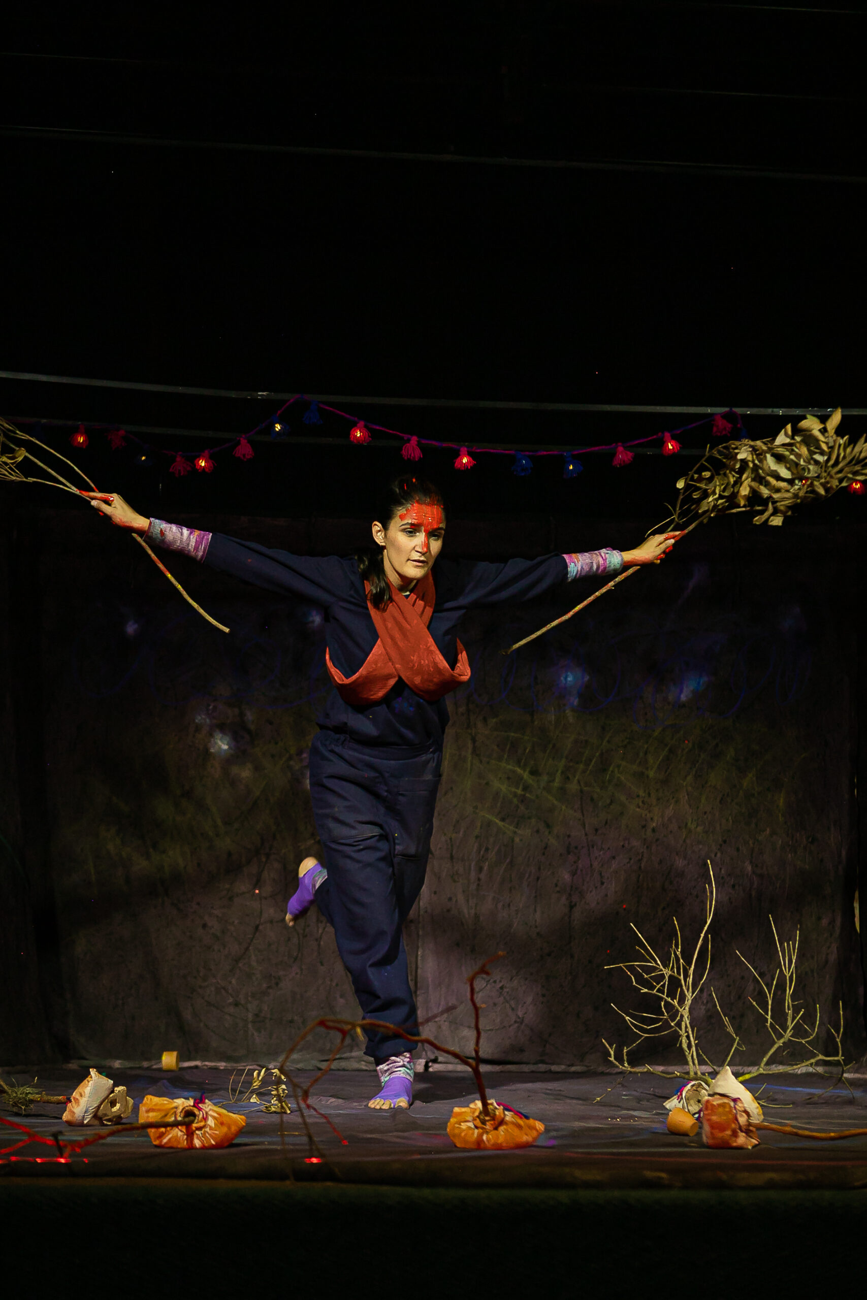 Ailén Roberto, experiente na adaptação de narrativas literárias e orais para o palco, costura as histórias por meio da presença simbólica e poética da personagem Noite.
