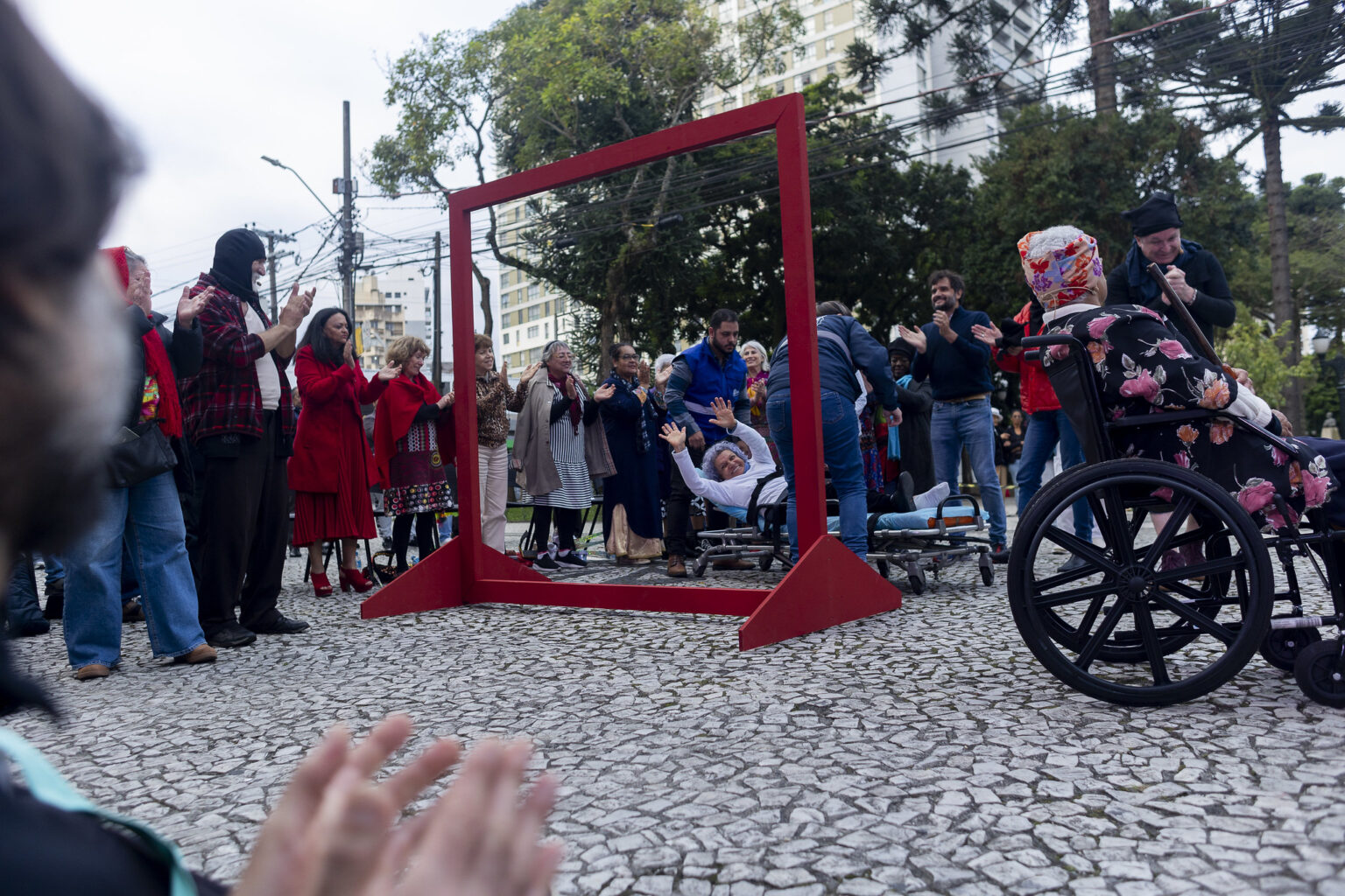 Durante a montagem, na Praça Santos Andrade, no centro de Curitiba, ela sofreu uma queda e teve uma fratura no tornozelo.