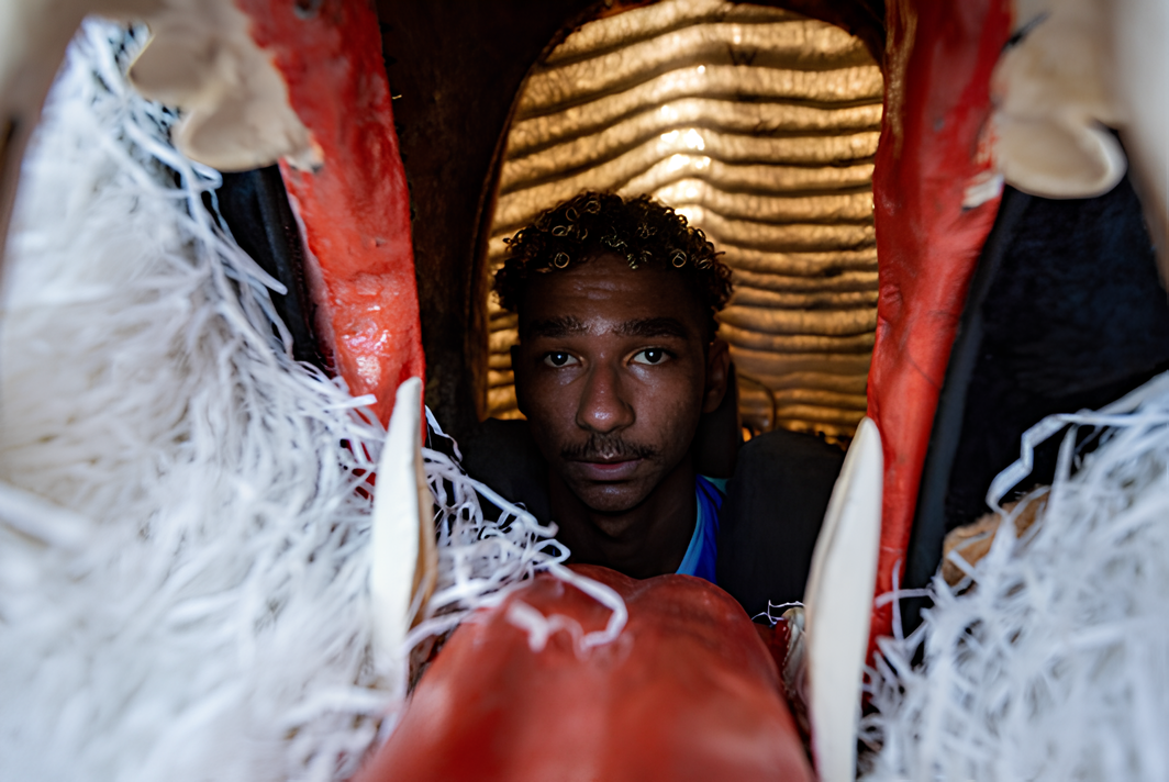 A mostra reúne mais de 200 obras de 70 artistas de diferentes gerações e origens, como Alberto Pitta, Bajado, Bárbara Wagner, Heitor dos Prazeres, Lita Cerqueira, Rafa Bqueer e Rosa Magalhães. Dividida em quatro núcleos — Fantasia, Trabalho, Cidade e Poder —, a exposição parte de uma premissa: o Carnaval é uma máquina social movida por mãos que, na maior parte do tempo, permanecem invisíveis.