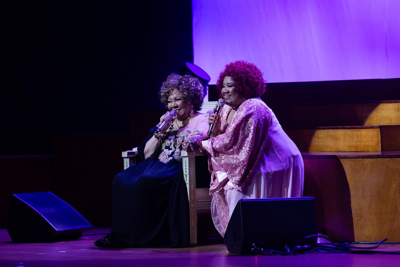 O palco se transforma em uma celebração vibrante da música negra contemporânea. Sandra é herdeira do movimento Black Rio, e Margareth, a rainha do afropop baiano.