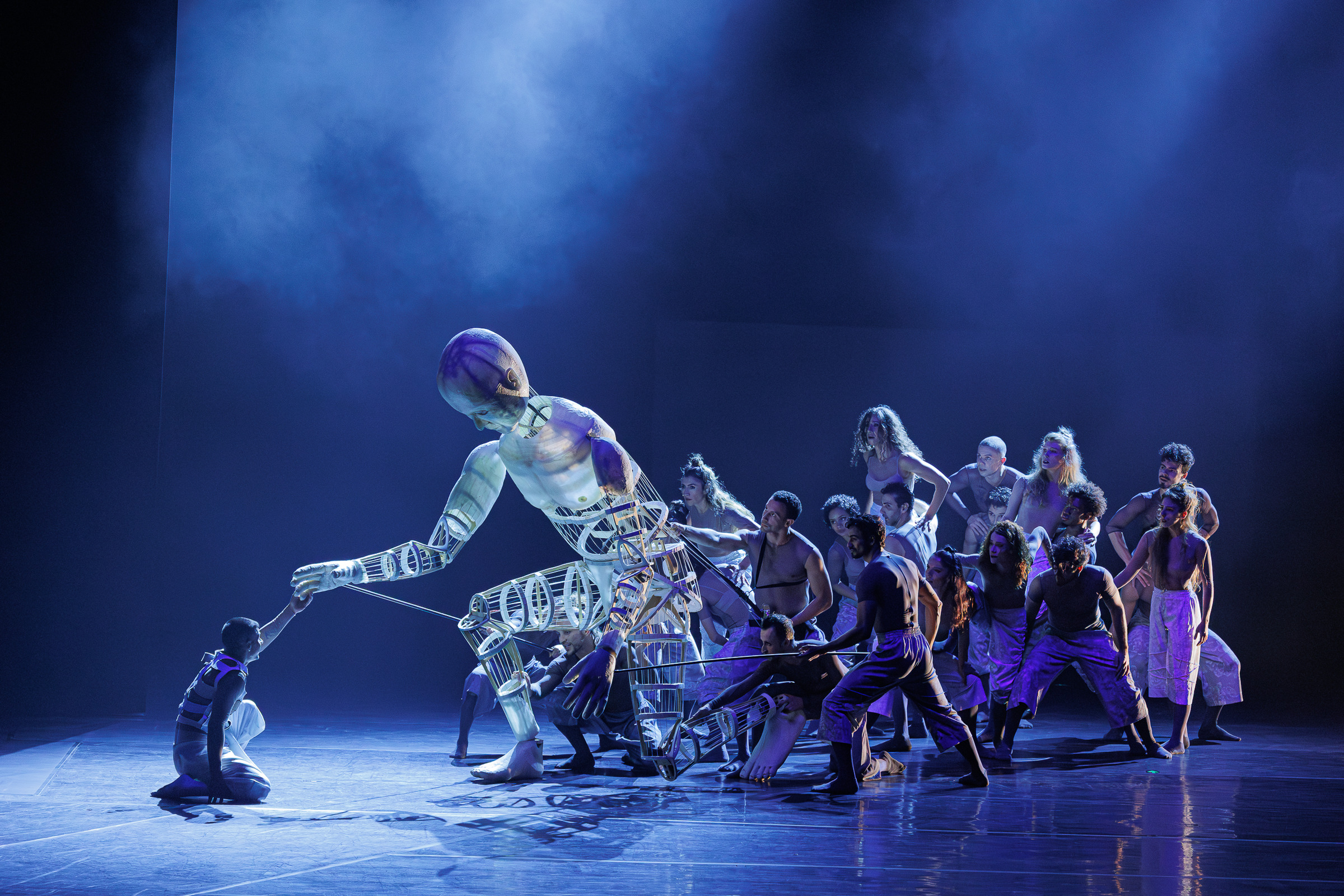 Lançado em 2023, “Contraponto” reúne duas obras. “Anima – Imensidão Adentro”, de Alan Keller, abre a noite com uma imersão sensorial e um universo onírico. A criação incorpora elementos do teatro de formas animadas e inclui um boneco de três metros de altura, símbolo da montagem.