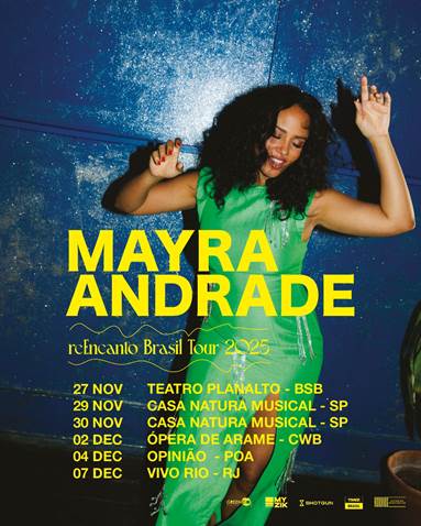 De origem cabo-verdiana, mas nascida em Cuba, Mayra Andrade é uma das vozes mais importantes da “world music” contemporânea. Aos 40 anos, ela inicia sua nova turnê brasileira em Brasília, no Teatro Planalto, na próxima quinta-feira. Depois, o show imperdível passa por São Paulo, Curitiba, Porto Alegre e Rio de Janeiro.